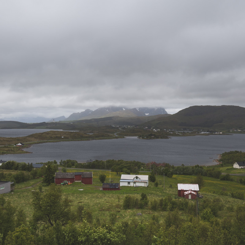 Der Morgen ist stürmisch, aber weitestgehend trocken. Wir trödeln ordentlich mit dem Aufstehen, dem Frühstück, dem Losfahren. Ich verstehe nicht, warum mir das Wetter so auf die Motivation schlägt. Ein kurzer Stopp an einem Aussichtspunkt kurz vor dem Örtchen Borg gibt uns einen schönen Blick über die Landschaft.